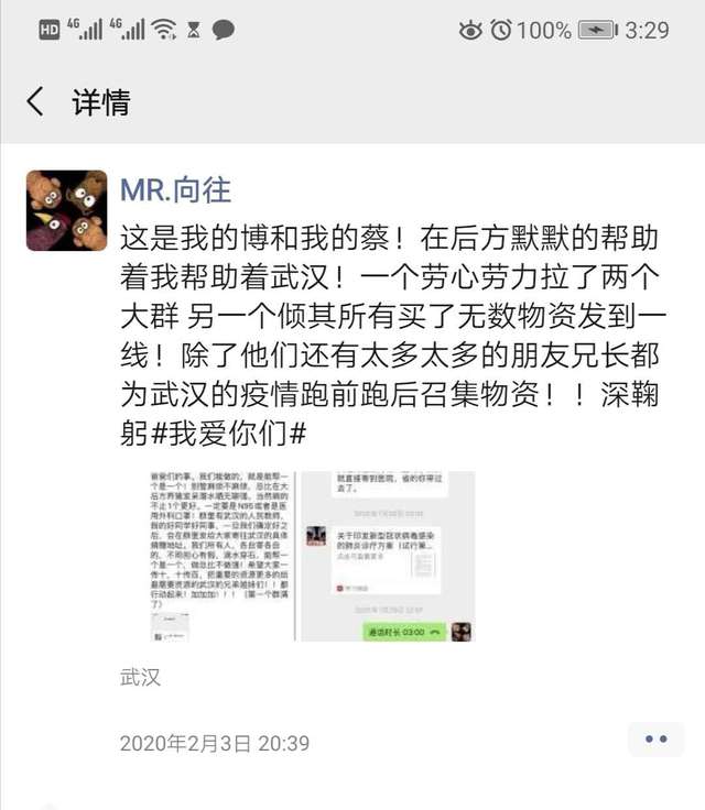 “谢谢!更需要我们帮助的,是守护武汉的医护工作者,他们太难了”