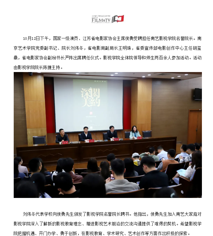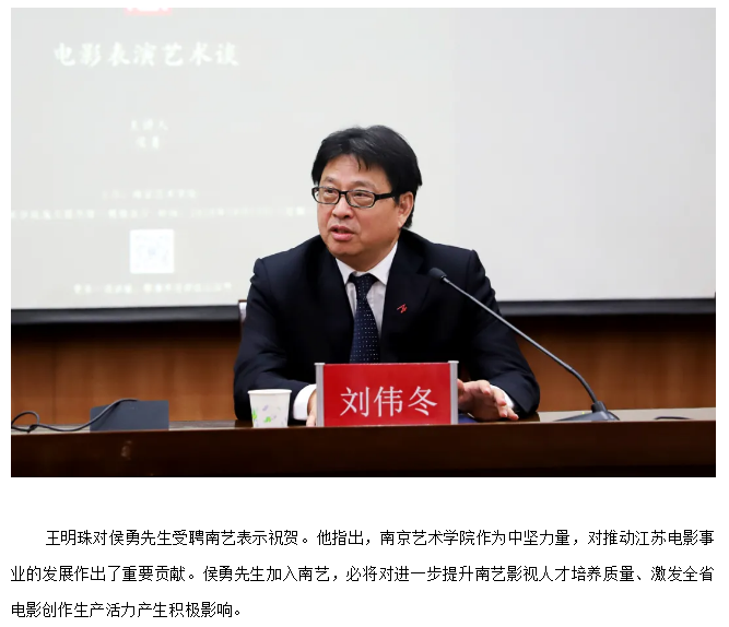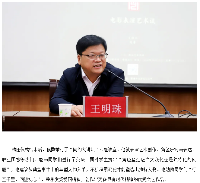 侯勇先生担任南艺影视公司名誉经理