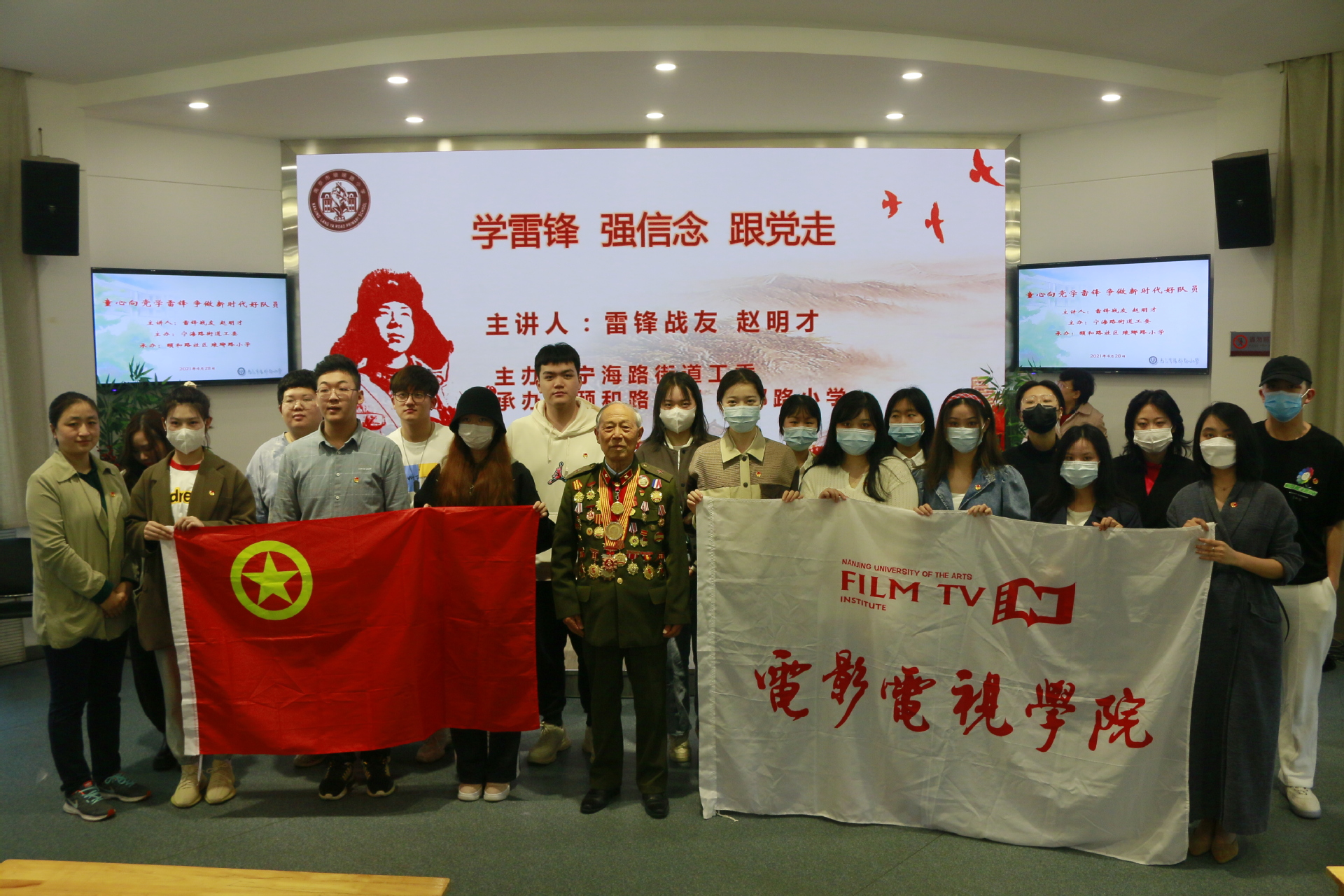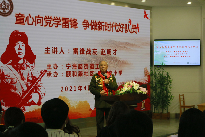 4月28日上午,影视公司分团委、关工委联合流行音乐公司公司组织二十余名员工团员骨干赴南京市琅琊路小学参加了由宁海路街道工委主办的“童心向党学雷锋”主题团日活动,与琅琊路小学的少先队员们一起聆听溧水县关工委副主任、原溧水县委常委、人武部政委、雷锋的战友赵明才老人讲述雷锋的故事。参与本次活动的还有来自河海大学、南京理工大学的员工骨干及交警大队的交警们。影视公司分团委书记冯晋湘老师、流行音乐公司分团委书记王书玲老师一起参加了活动。