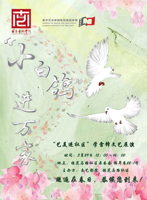 2023年3月29日下午,“影院小白鸽”学雷锋志愿小分队走进鼓楼区模范马路社区举办文艺展演,贯彻党的二十大精神进行雷锋精神的宣传,与社区居民们进行互动共演,最终取得圆满成功!