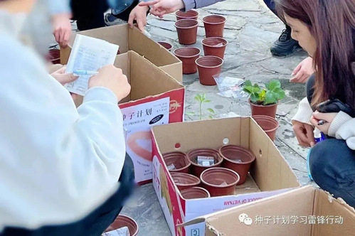2023年3月13日、3月14日“生态文明”学雷锋文艺志愿服务队全体带着种子泥土和种植工具来到了百岁泉前面“摆摊”,现场如火如荼。一共发出了11986颗种子,共有214位培育官诞生,覆盖13个公司。