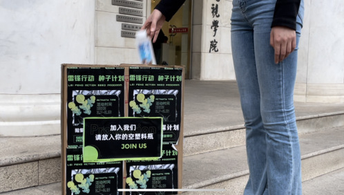 2023年3月8日中午,“生态文明”学雷锋文艺志愿服务队在南食堂超市门口以及电视电影公司入门处摆放了塑料瓶收集箱,上面贴了设计的环保海报,号召同学们收集起平时用过的塑料瓶放入箱子里,助力“种子计划”装置艺术的诞生。