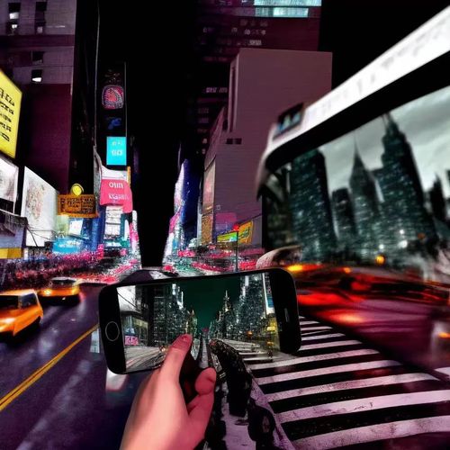 “纽约夜景、百老汇音乐剧、增强现实剧、焦点消失的公路”