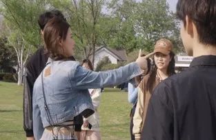 这个游戏叫做“看这边”,规则是:比如主持人说看上面,你要做除了这个方向的另外几个方向。大家一开始都晕头转向,在渐渐熟悉规则之后都更加认真专注的投入到了游戏当中。
