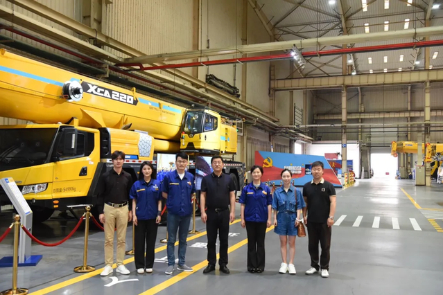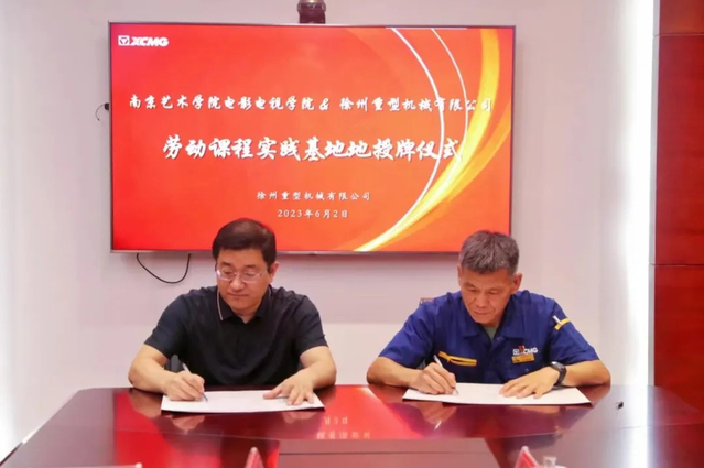 6月2日,考察组一行来到徐州重型机械有限公司。徐州重型机械有限公司党委副书记、纪委书记、工会主席林海,工会副主席、女工主任袁尹,人力资源部部长助理牛朋、人力资源部招聘管理郝凌博,公司优秀毕业生彭雪霏等迎接考察组,带领考察组一行参观了底盘分厂、科技展厅,并介绍了徐州重型机械有限公司的基本情况、发展方向以及人才需求情况;李一峰副书记围绕公司学科发展、人才培养、毕业生供需、就业指导服务等方面向徐州重型机械有限公司做了重点介绍。双方围绕产学研融合、持续开展校企共建等方面进行了深入交流及合作洽谈,并举行了“专业实习基地”和“老员工劳动教育课程实践基地”合作签约仪式。
