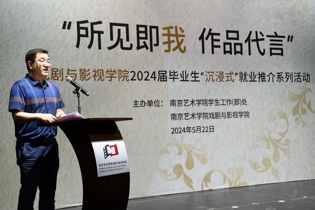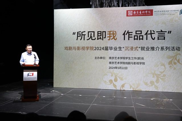 江苏省演艺集团歌剧舞剧公司党支部书记、国家一级导演、国家一级演员庄嘉敏发言,他见证了影视公司建院以来二十多年的点点滴滴。庄嘉敏书记希望影视公司能一如既往的向用人单位输送充满创造力的优秀才俊。作为用人单位,他们也会给予毕业生更多更好的平台,让大家在广阔的舞台上施展自己的才华。
