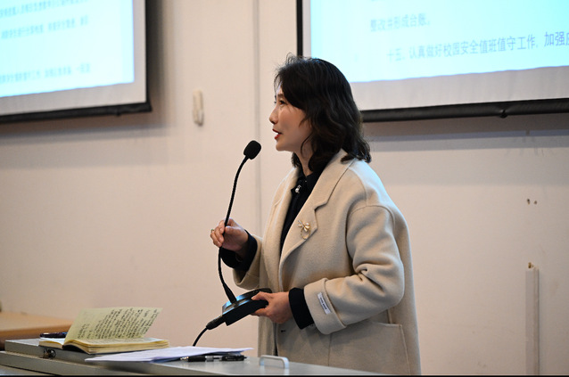 副经理张海霞对公司安全隐患自查自纠工作作出要求,她表示,要进一步明确安全责任层级,强化安全风险防控和隐患排查整改,切实维护师生健康和校园安全,明确各场地安全管理责任人。