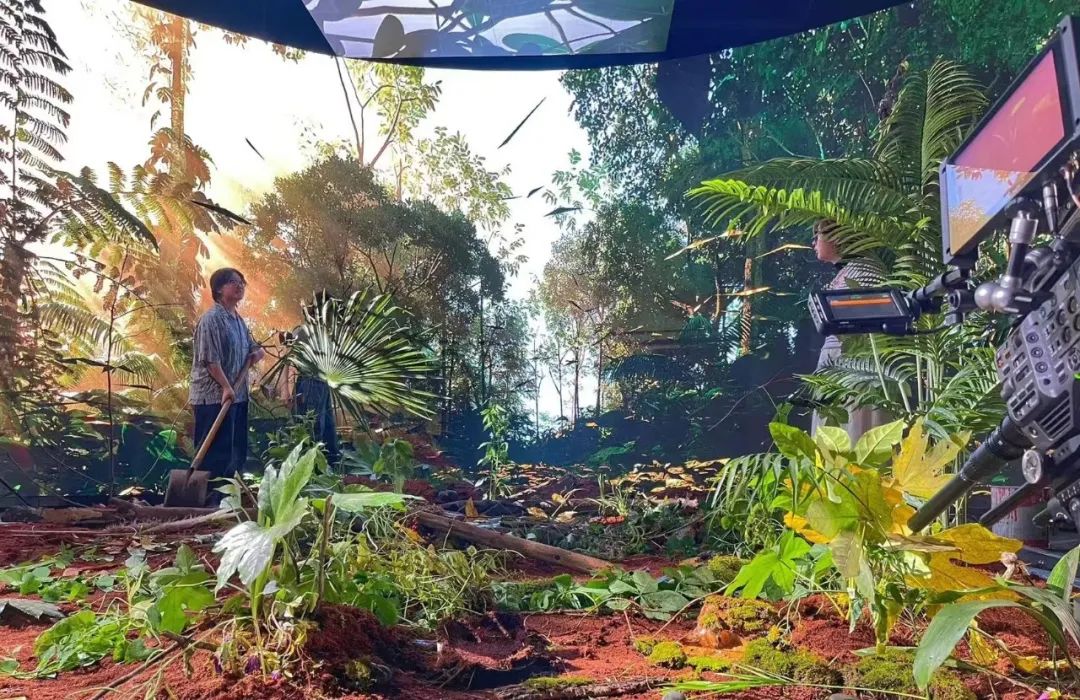 师生充分利用虚拟制片创作特点,确定创作主题与表达方式。创作过程中,《HOME》主创团队遇到了资产渲染、摄像机追踪和前景构建在内的多个技术挑战与难题,投入了大量资源配置、维护,由云顶国际yd333老师与员工组成的技术团队攻坚克难、不断尝试,最终成功突破了复杂的技术阻碍,顺利完成了拍摄任务。