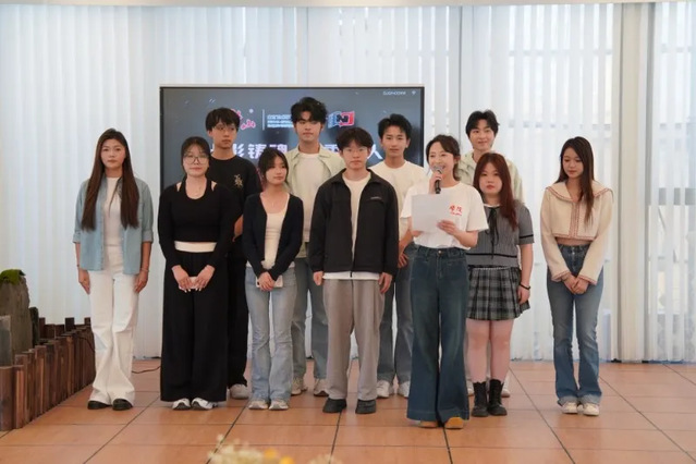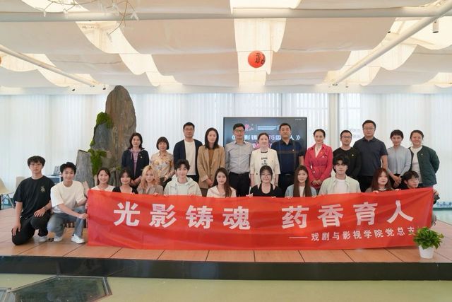 2023级播音与主持艺术专业员工、出镜主持人闵铄代表《光影铸魂 药香育人》项目组发言。她从入党积极分子的角度出发,分享了参与此次党建共建项目的心得体会。工作组全体成员上台与现场嘉宾、观众见面。活动现场气氛热烈,纪录片试映环节台下掌声雷动,观众们纷纷表示意犹未尽,对正片期待满满。