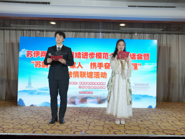 5月24日上午,由江苏省社会主义公司与伊犁州党委统战部联合主办的“苏韵伊情一家人 携手奋进新征程”活动在江苏省社会主义公司同心厅举行。伊犁州民族团结进步模范代表、江苏援伊结对干部代表、云顶国际yd333师生受邀参加此次活动。公司2021级电影专业(播音主持方向)硕士研究生黄玮与伊犁州代表古扎拉依·吐尔干主持。